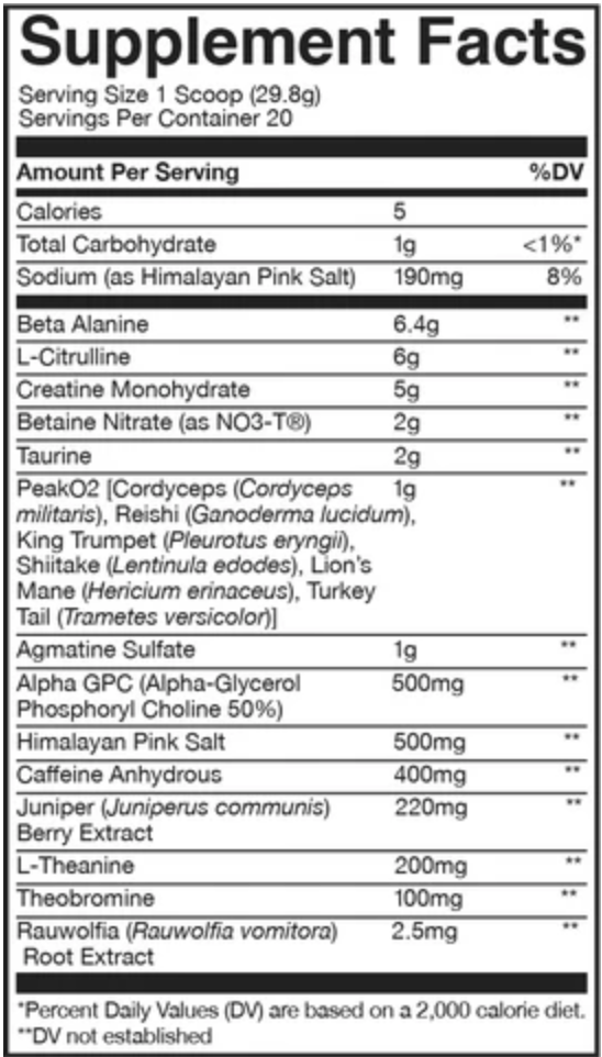 Explosive Energy: A potent dose of Caffeine ensures you have the drive to crush your most intense workouts.