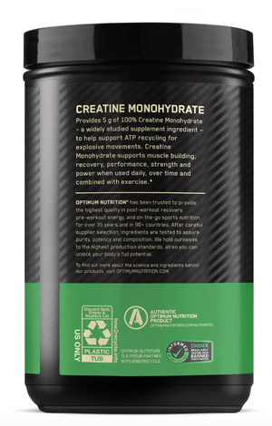 Optimum Nutrition's Micronized Creatine Powder. As one of the most well-researched supplements in sports nutrition, Creatine Monohydrate is scientifically proven to help increase muscle strength, power, and size when combined with resistance training.