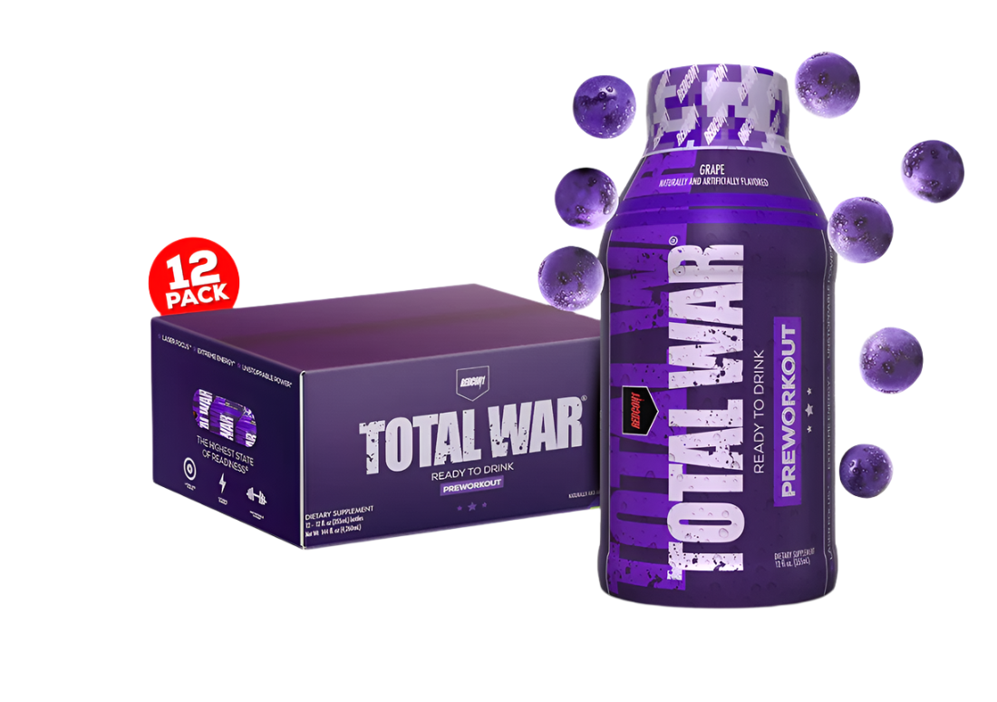 Boost your workouts with Recon1 TOTAL WAR Ready To Drink Preworkout. With 365mg of caffeine and 6g of L-Citrulline, this refreshing drink delivers long-lasting energy, increased blood flow, and intense pumps. Plus, 3.2g of Beta Alanine helps improve muscular endurance and performance. Experience the same benefits as the original TOTAL WAR in a convenient, delicious drink.